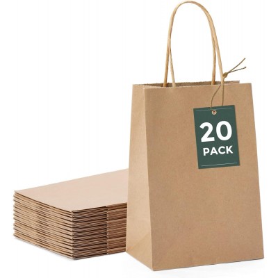 GSSUSA Braune Papiertüten, 5,25 x 3,75 x 8, 20 Stück, kleine Geschenkpapiertüten mit Griffen, Bulk,